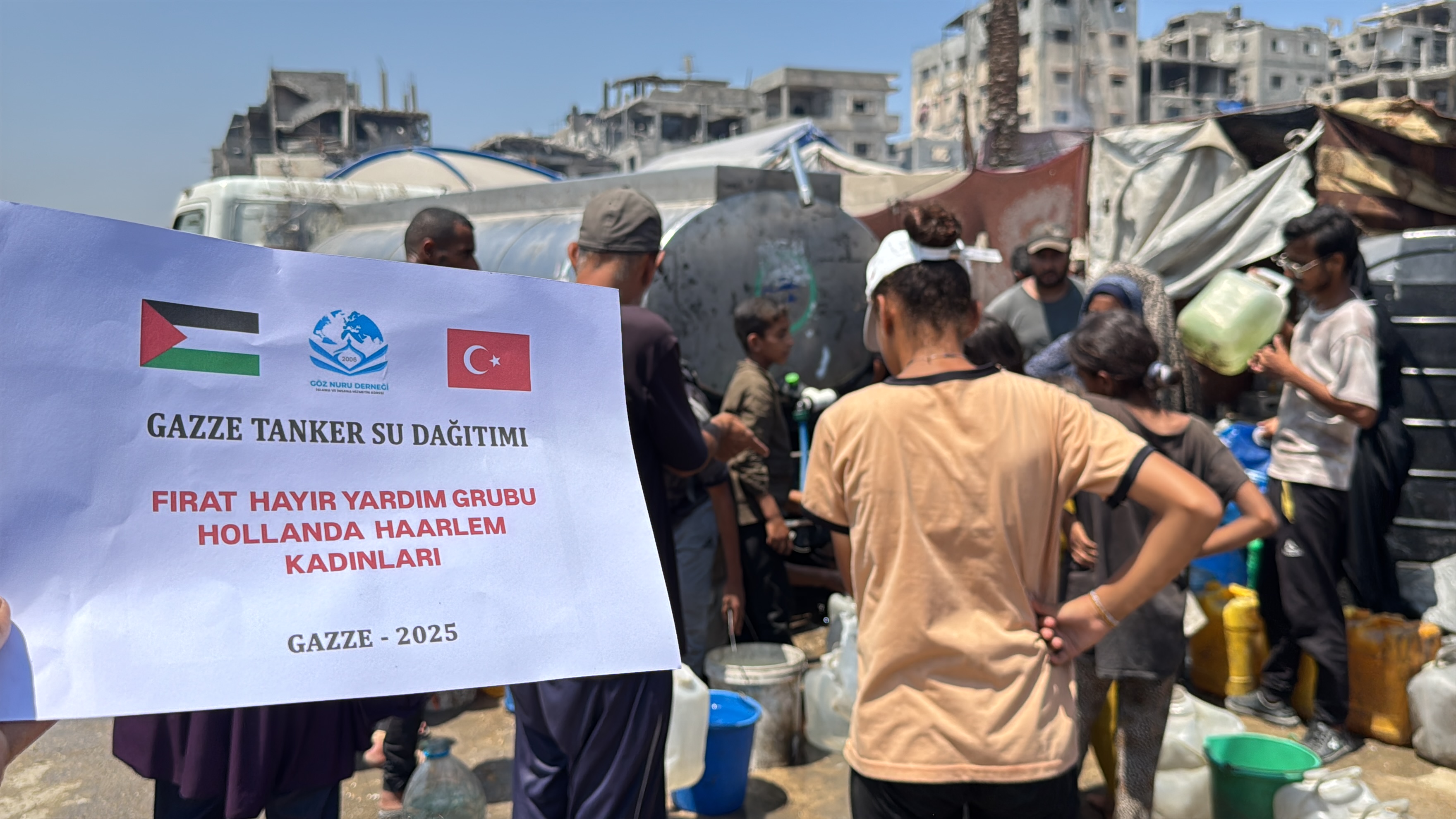 Göz Nuru Derneği olarak Gazze'de çalışmalarımız ara vermeden devam ediyor. Kardeşlerimize tanker su dağıtımı yaptık.